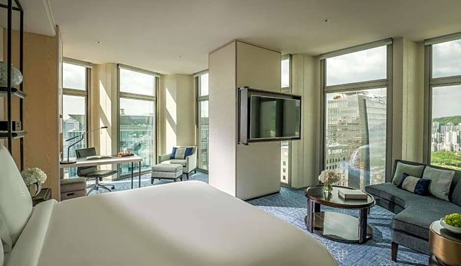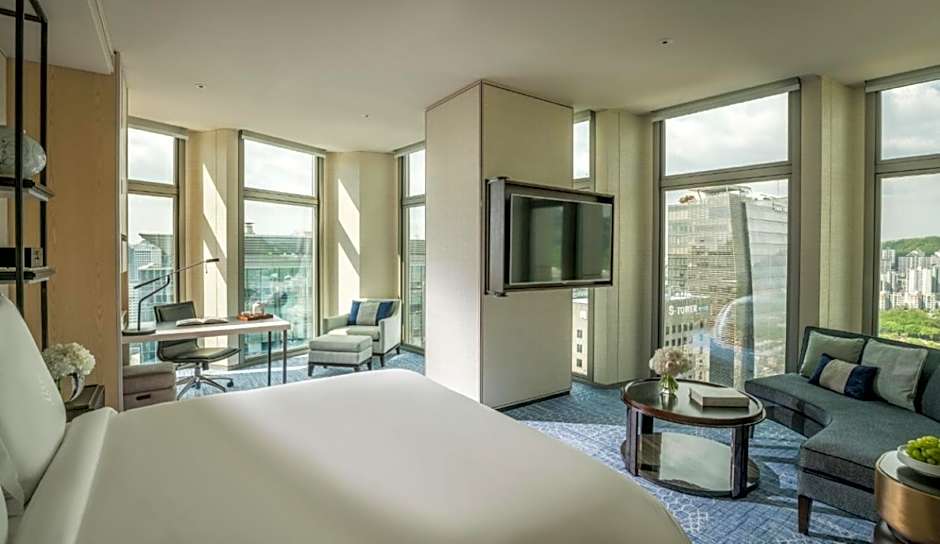 Boasting sweeping city views through floor-to-ceiling windows, Premier Double Room comes with a seating area, a separate working area and a iPad Mini to access hotel services. Private bathroom is finished with Italian marble flooring and features a spa bath, a rain shower and double vanity.